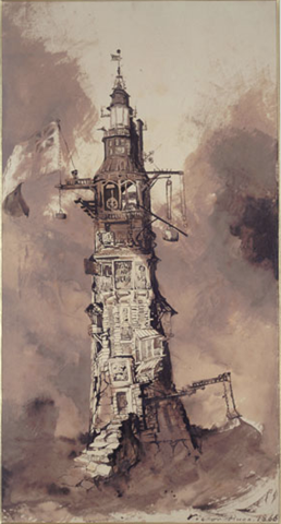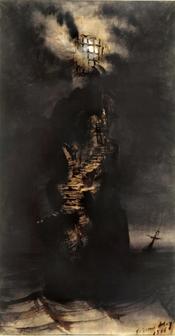 Le très sombre Phare des Casquets qui évoque plus le naufrage que la lumière salvatrice des marins :