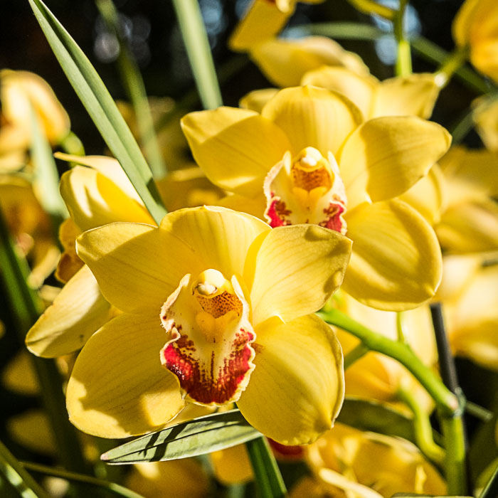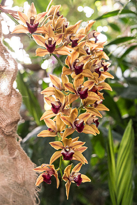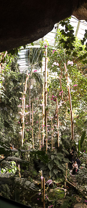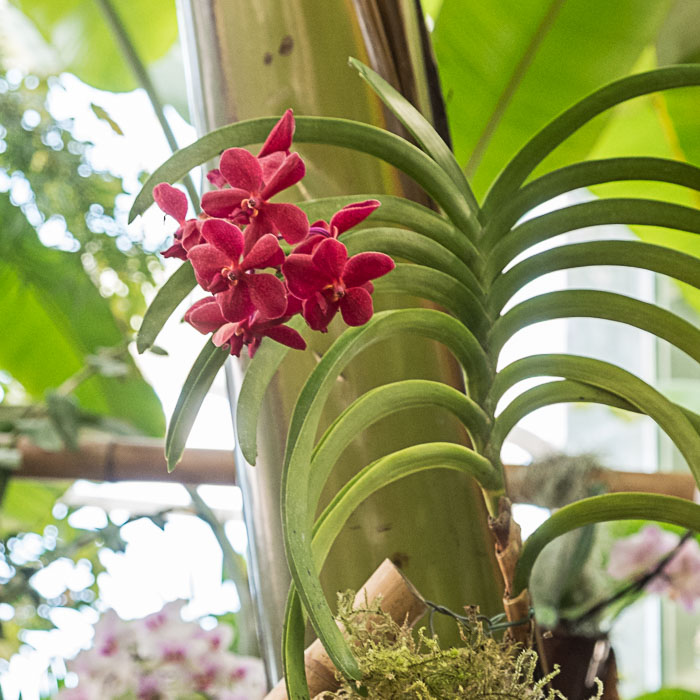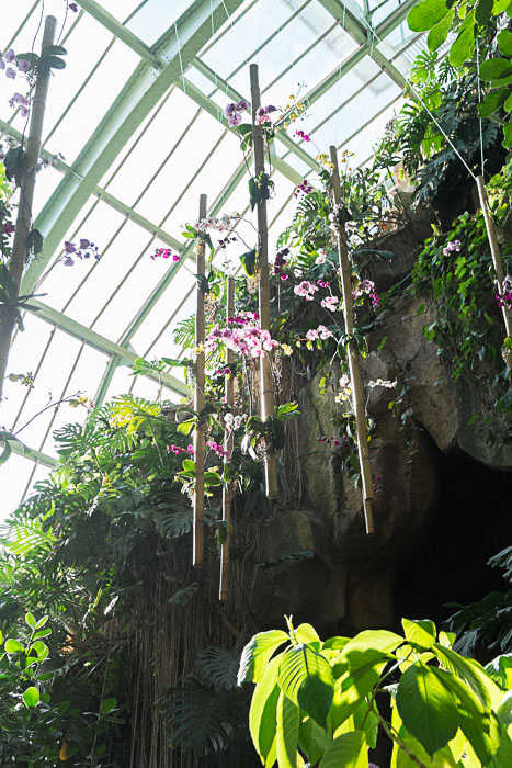 Après cette entrée de matière, vous pourrez y aller d'un couplet sur la profusion des teintes, le chatoiement des pétales caressés par le soleil d'un dimanche d'hiver, la serre comme écrin de bijoux odoriférants et l'orgue de bambous suspendus qui hébergent ces fleurs de paradis.