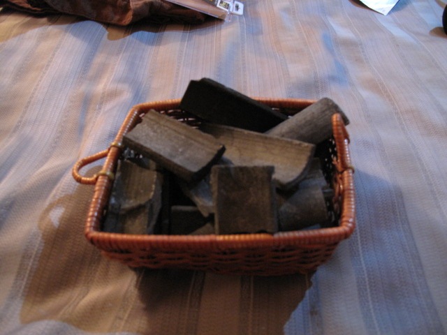 Nouveau jeu : ami lecteur, devine ce que contient cette boîte et à quoi elle sert (parce que moi je l'ignore). Indice : elle était posée à terre dans la chambre et ça ressemble à du charbon.