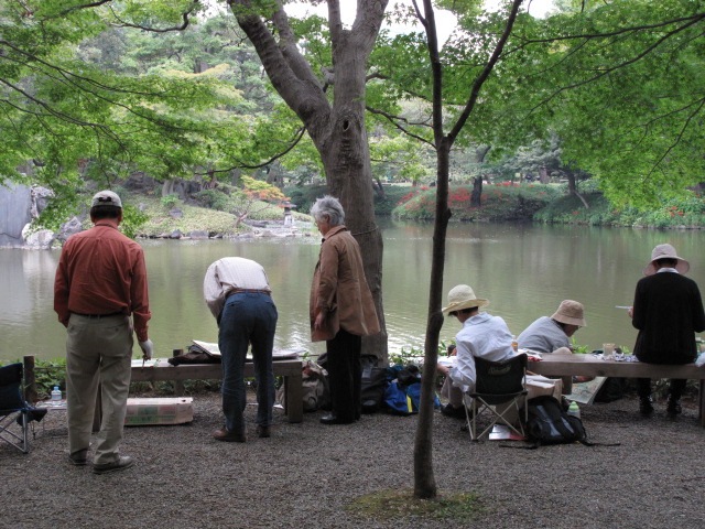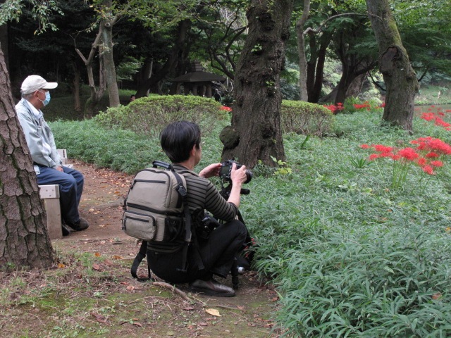 Bon sinon le jardin (Koishikawa-Korakuen) est magnifique et peuplé d'autochtones exerçant leur hobby : peinture et photo. Pour cette dernière, on découvre qu'ils sont adeptes de la macro de loin (comme la macro classique mais au 600 mm, ça calme).