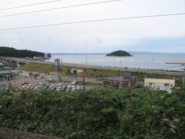 Pour notre seconde correspondance, pas de place réservée, le train est bondé, nous nous décidons pour le couloir entre les voitures 7 et 8. Le trajet dure 2 heures avec un passage bref mais bruyant par le tunnel sous-marin qui relie les 2 îles. J'en profite pour lire "Chronique Japonaise" de Nicolas Bouvier : si vous ne connaissez pas, lisez toute son oeuvre, c'est un ordre !