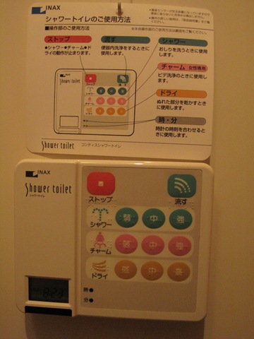 * les wc japonais incluent des technologies de folie, et qui sont loin d'être de simples gadgets. Voici un exemple d'un wc relativement simple de l'aéroport de Narita.