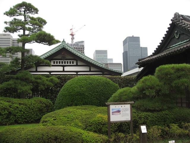 Suite à cela nous nous dirigeons d'un pas que la fatigue et la faim rendent moins alerte vers le palais impérial. Nous nous restaurons au passage dans un ramen-automatique : on choisit le plat en vitrine, on essaye de trouver le même à la machine automatique (tout est en kanji, ce qui donne des phrases comme "moi je veux un maison-étoile-bonhomme" ou "merde, je retrouve pas le zigouigoui avec un trait comme ça"), on paye, on reçoit une sorte de ticket de métro qu'on donne au cuistot, 30 secondes plus tard, le bol de nouilles chaudes est prêt. Bilan : 330 Y, soit 2,5 euros pour un plat nourrissant et bon dans un endroit propre, imbattable.