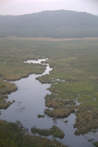 Ces dernières sont composées de petits villages, petites rizières et petits bosquets. Oui tout est petit, mais on distingue un peu plus loin de grandes montagnes à la silhouette volcanique dont les flancs sont couverts d'une forêt qu'on imagine vigoureuse. A vrai dire, la végétation locale ne fait pas dans la demi-mesure : nous avons l'impression que la flore, vexée d'être sans cesse perturbée par les nouvelles constructions, se venge en transformant le moindre mètre carré laissé libre de béton en forêt impénétrable.