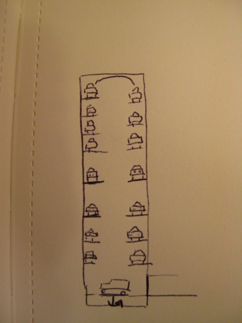 Ci-dessous le modèle de la chambre d'hôtel, notez la possibilité de modifier la direction du jet en fonction du sexe de la personne concernée.