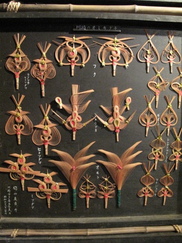 Des mosubi : noeuds que l'on appose sur des offrandes (ici pour des bouteilles de saké)