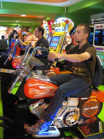 Arrêt dans 2 salles d'arcade pour faire du Gundam. Comme je ne prête pas mon profil à n'importe qui, Hugunkh prend une carte : quelques parties plus tard, la conclusion s'impose : c'est toujours génial, mais avec un mécha sans upgrade, on a du mal à entamer les adversaires, d'autant que le kill semble moins rapide qu'avant et que le team campe derrière les immeubles (*) et que l'adversaire se recharge à la base. Dommage aussi de ne pas pouvoir faire un coop local....