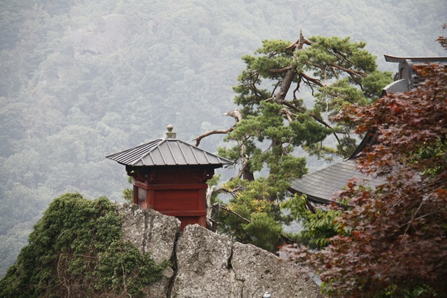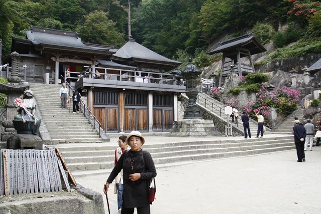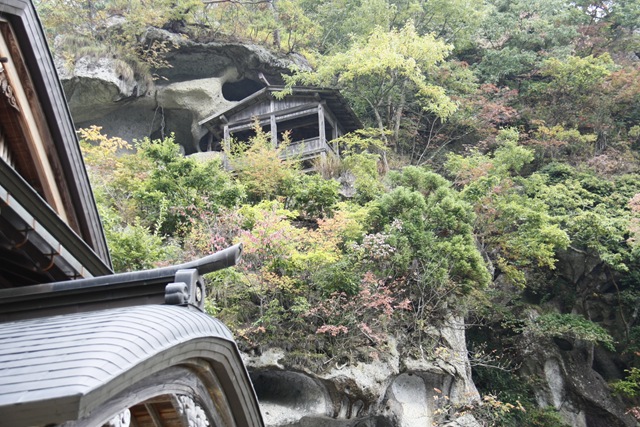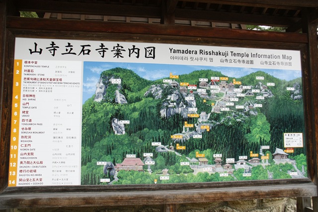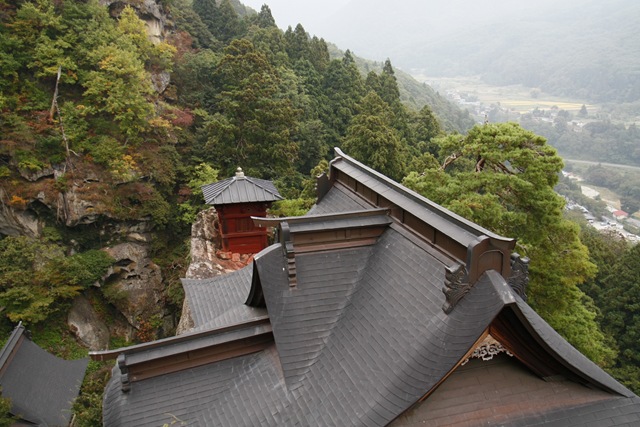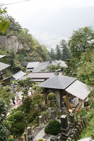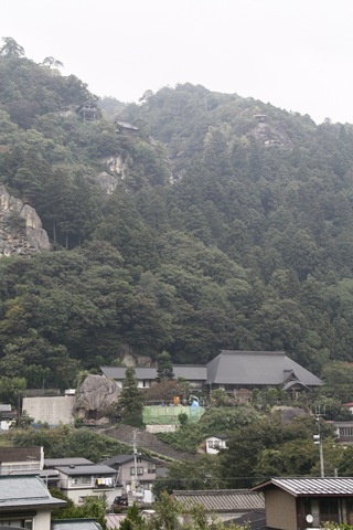 Dès le quai de la garde de Yamadera, la vue est saisissante : on aperçoit quelques bâtisses nichées sur la colline (qui a une bonne gueule de falaise en fait).