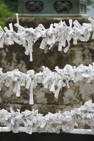 Prières rédigées sur un papier que l'on noue ensuite à ce que l'on trouve (corde dédiée à cela, fil tenant un poteau électrique, branchage)