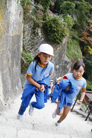 Ces écoliers sont très polis donc quelques 350 Konnichi wa ou Hello plus tard, nous arrivons en bas où nous recherchons un sentier un peu moins touristique qui permet d'admirer des rochers sacrés.