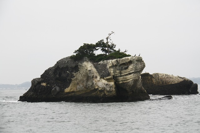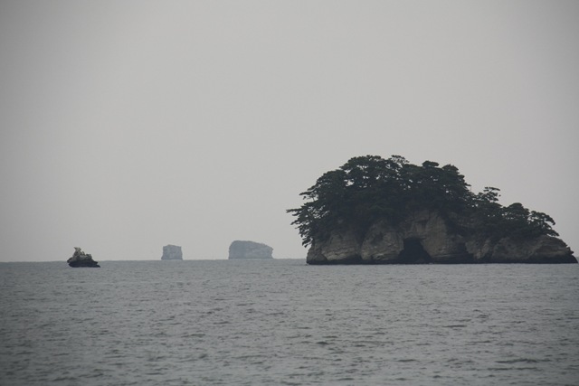 La baie est à quelques encâblures de Sendai (40 minutes de Métro) et se découvrent en bateau. Mais pas n'importe quel bateau (non pas un qui va vite, on n'est pas sur le lac Powell) : un qui pue et qui attire les mouettes. Car les touristes sont débiles (c'est d'ailleurs à ça qu'on les reconnait) et nourissent ces volatiles de gâteaux secs dont la vente est, comme par hasard, proposée à côté des quais. Super, donc on se prend des mouettes dans la gueule en voulant prendre des photos, et toujours au moment de déclencher, paf une mouette sur la photo....cool. Sinon c'est un diesel, et on le sent bien...