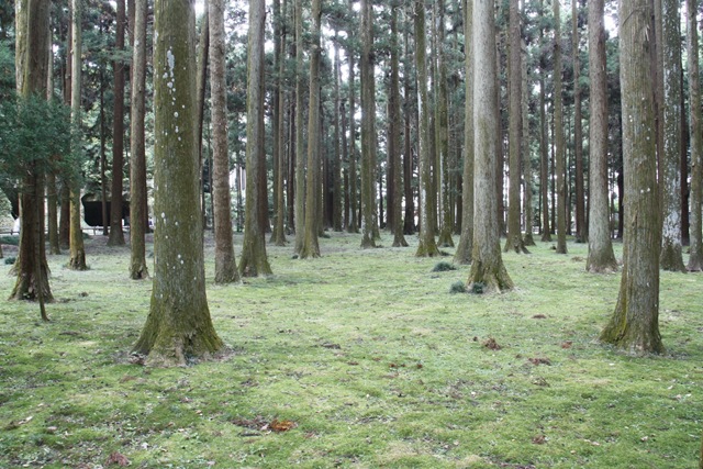 Nous visitons quand même l'île de Fukuuarjima -qui contient des essences d'arbres rares et parait-il des cygnes sauvages- et le jardin d'un temple en travaux.