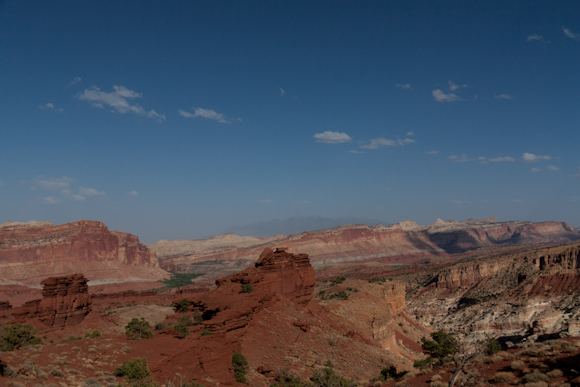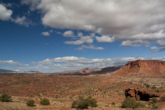 Encore de la route aujourd'hui. Nous sommes accompagnés (très fortement) par Eole jusqu'à Bicknell qui est une petite ville (mais alors toute petite) à quelques miles du visitor center de Capitole Reef, le parc qui va servir de cadre à nos prochaines aventures.