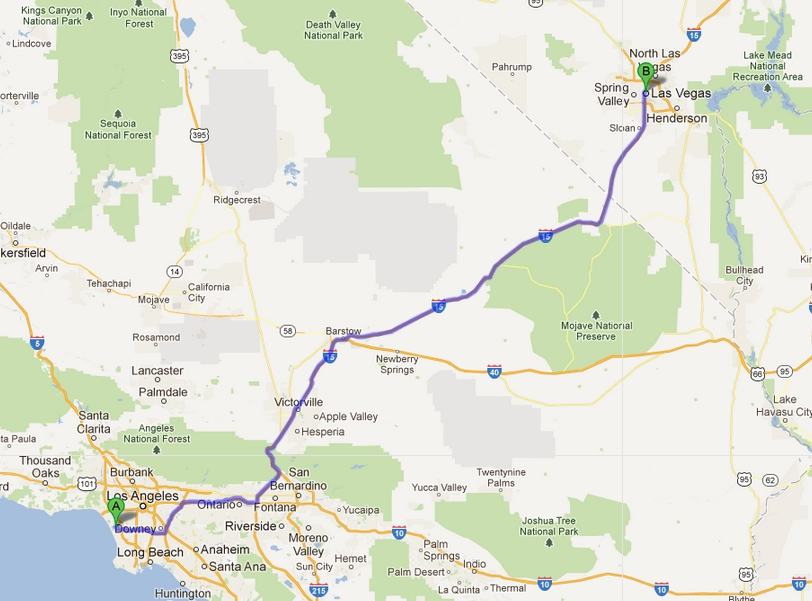 Pour sortir de Los Angeles, même en début d'après-midi, il faut patienter et enchaîner les bouchons : 1h 30 après le départ nous rejoignons la 15 qui va nous mener jusqu'à Vegas.
