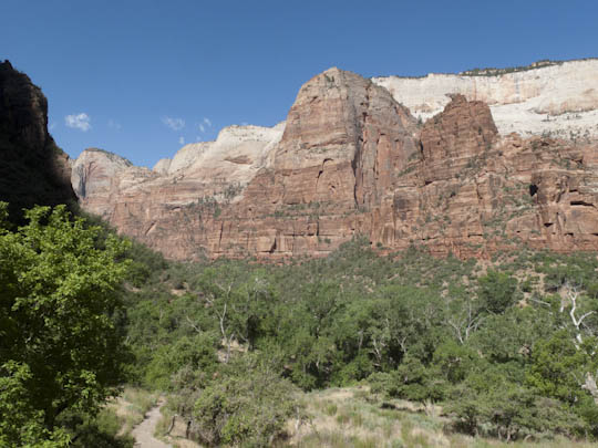 Par où commencer ? Donc si vous avez suivi les épisodes précédents (si vous les avez pas suivis tant pis pour vous), vous savez que nous sommes arrivés à côté de Zion, dans la charmante ville... bourgade... rue...bon ok au charmant carrefour de Mont Carmel. Celui-ci sera donc notre base arrière pour l'exploration de Zion, qui comme chacun sait, est l'un des parcs les plus visités aux USA (2,5 millions par an quand même), à tel point qu'un service de navette obligatoire dessert les différents spots du parc afin d'éviter les embouteillages monstres. Zion est un canyon assez profond (peut être 700-800 m) que l'on aborde par le bas (à la différence du Grand Canyon) et qui est assez encaissé. Le cours d'eau responsable de tout ça, s'appelle la virgin river.