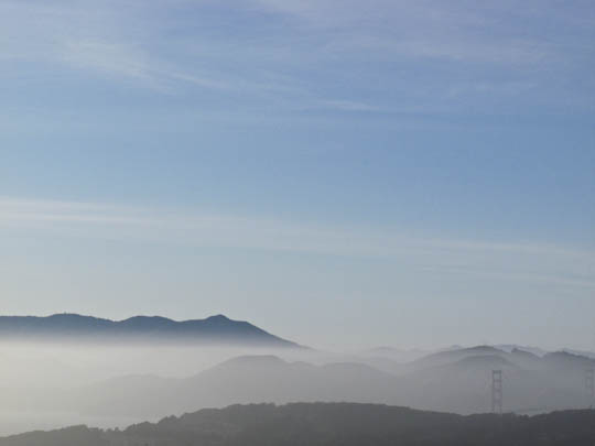 Voilà dernier jour complet à SF avant le grand départ et la météo n'est pas fameuse, nous gratifiant de ses légendaires émanations humides : il y a de la brume, il fait froid.