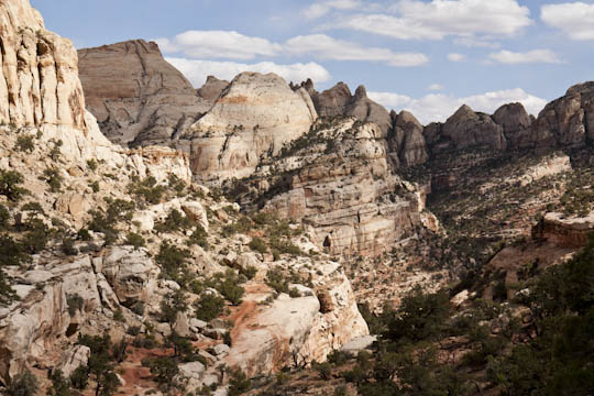 Nous redescendons ensuite dans la waterpocket fold, serpentant dans des paysages de western avant de tomber raplapla. Nous sommes secourus pas un F150 Ranch Unlimited Edition Power Max conduit par... euh disons Bob.. qui en plus d'être là (entendre là tout de suite maintenant quand il faut) a des patches pour pneus et un compresseur.