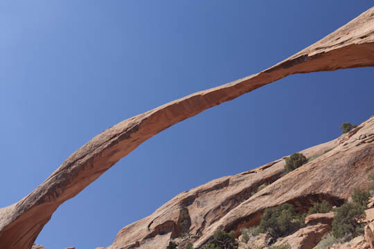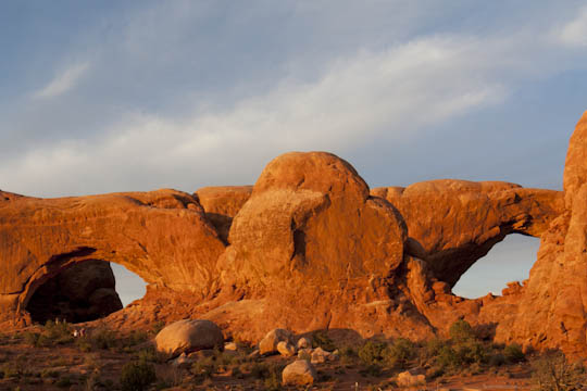 Arches est le fleuron de la région, avec l'emblématique Delicate Arch et ses 2499 petites soeurs. Nous avons fait le coucher de soleil devant les 2 Windows (North et South respectivement formées en 1995 et 1998 - oui je sais) et la randonnée vers double-O-arch avec retour par la primitive trail qui est bien mais dure, éprouvante et chaude. Cela dit, vous pourrez voir Landscape Arch, et il faut mieux se dépécher puisqu'une partie s'est écroulée en 1991.