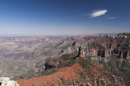 Nous avons fait petits joueurs et choisis quelques randonnées et points de vues sympathiques sur le Rim : Bright Angel Point, Roosevelt Point, Cape Final Trail (parmi les pins), Cape Royal (belle vue pour une table de pique-nique), Point Imperial.