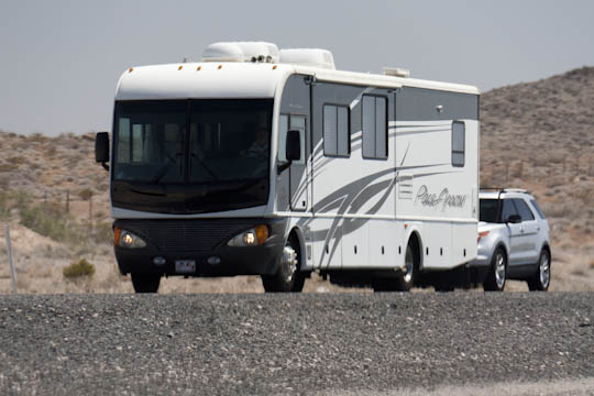 un RV (Recreational Vehicule) et sa voiture attelée :