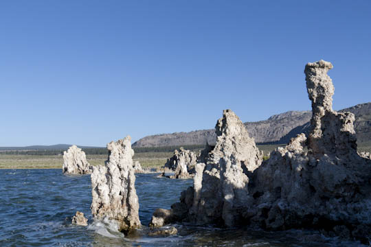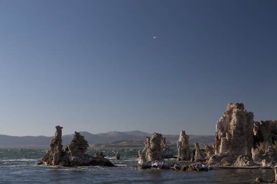 Nous sommes ensuite retournés au Mono-lake pour admirer les concrétions calcaires : encore que concrétions calcaires, c'est l'explication officielle, vue la quantité de mouettes, je pense que la véritable raison est une accumulation de guanos ! Ce qui est certain c'est que l'eau du lac est très salée (2,5 fois plus que l'eau de mer) et que le lac est une étape sur les migrations des oiseaux marins.