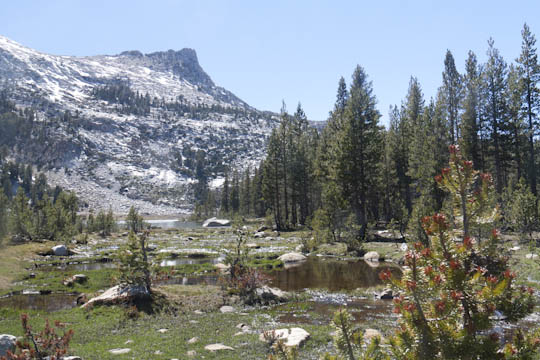 Les distances aidant, nous commençons par l'exploration de Tuolumne Meadows (sortes de prairies alpines qui se trouve être sur la route), constellée de lacs, et habitées par des nuées de bersekers assoiffés de sang (ie des moustiques).