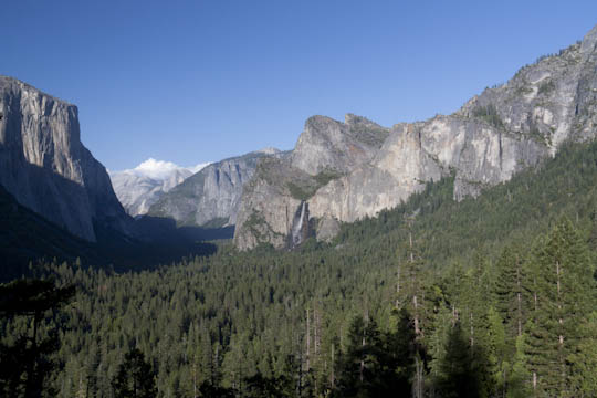 La vue de la vallée de Yosemite avec El Capitan à droite, et tout au fond sous le nuage, le hald-dome :