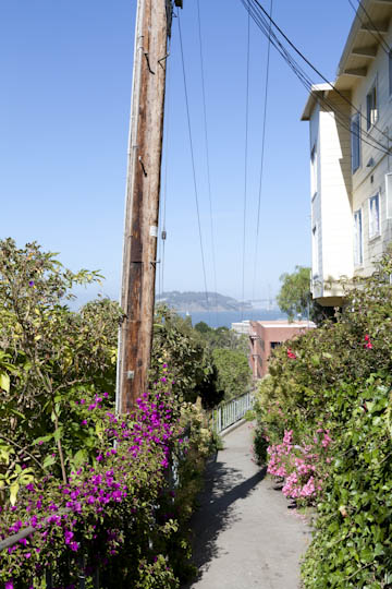 Les magnifiques jardins qui entourent les escaliers descendant vers les quais depuis la tour Coit :