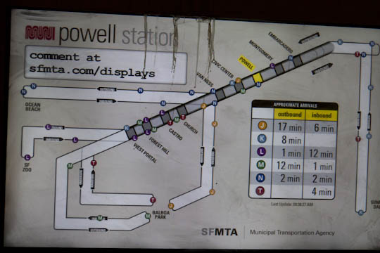 Troisième journée à SF, sous le signe de la porte dorée : le Golden Gate Park (qui n'est pas à côté du Golden Gate) et le Presidio (qui lui l'est, la vie est mal faite). Grosse marche (environ 20 km si on ne fait pas de détour), que nous commençons par un petit peu de métro.