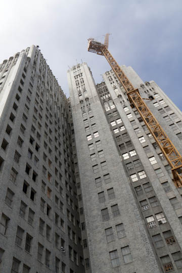 Les fameuses windows qui dessinent un visage monstrueux dans le soleil couchant :