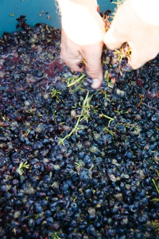 Bref c’était super sympa et sans vouloir faire dans le symbolisme de bas étage, on a quand même un sentiment très fort en travaillant, comme si ces gestes répétés depuis des millénaires s’était ancré dans notre inconscient. Il y a un plaisir diablement simple à décrocher les grappes des cep , une joie enfantine à plonger ses mains dans le bac pour récupérer les rafles et à contempler le mélange de peaux et de jus qui bascule dans le tonneau.