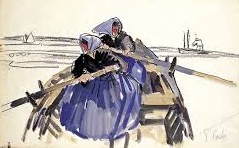 Un des nombreuses scènes bretonnes, illustrant les métiers, la pèche, des pardons, ici les marais salants :