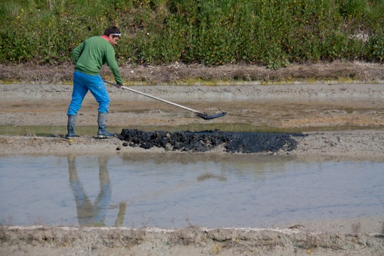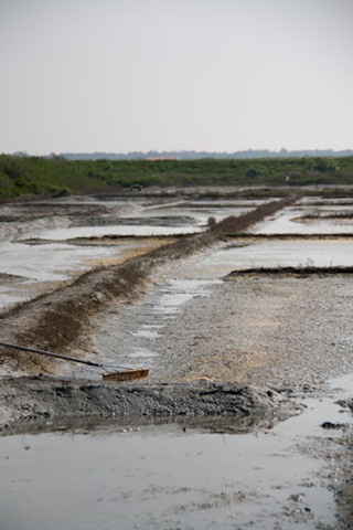 Les marais salants, le saulnier était tout occupé à jouer la star avec un journaliste mais il s’est remis au travail, non mais !