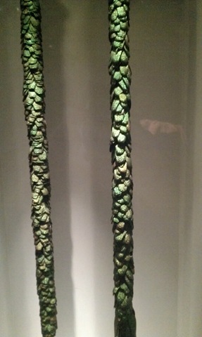 La troisième et dernière section initulée “pouvoir du cheveu” permet de voir une sélection plus ou moins capillotractés d’objets du musée qui parfois dressent les cheveux sur la tête. Bien souvent, le caractère imputrescible du cheveu en fait un symbole lié à l’au-delà ou à la puissance de son propriétaire.
