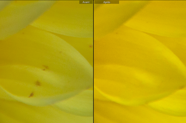 L’outil de retouche avec l’option de masquage automatique me semble beaucoup plus discriminant qu’avant, on fait ses modifications en 2 temps 3 mouvements et c’est plutôt pas mal même si le bruit monte vite, exemple (zoom 1:1) :
