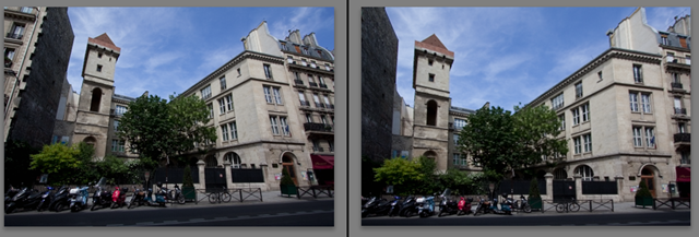Allez quand même, l’outil upright qui, en mode full-auto, rend quand même tip-top, exemple avant/après, sur la tour Jean Sans Peur, j’adoooorrre, on a beau savoir que rien n’est magique, c’est magique quand même :