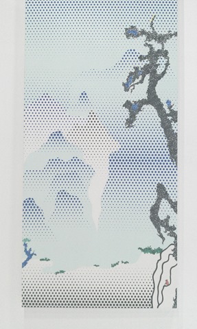 Et qui dit peinture sinisante dit aussi lettré et donc un roche de lettrés en acier : il fallait y penser.