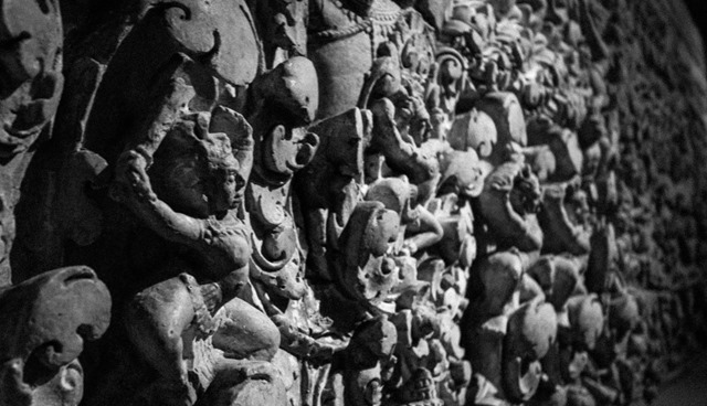 Monsieur Delaporte n’est pas un Indiana Jones taillant sa trace à la machette à travers la jungle et/ou les crocodiles, il est un peu plus contemplatif avec un sacré sens de l’observation, un don pour le dessin et sait s’entourer (photographes, dessinateurs, mouleurs). L’exposition montre donc croquis, élévations, plans, photos, estampages et bien sûr des moulages.