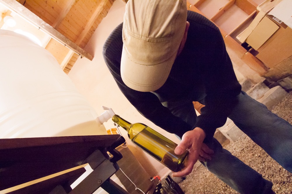 Embouteillage du blanc (notez le geste auguste et la machine high-tech utilisée)