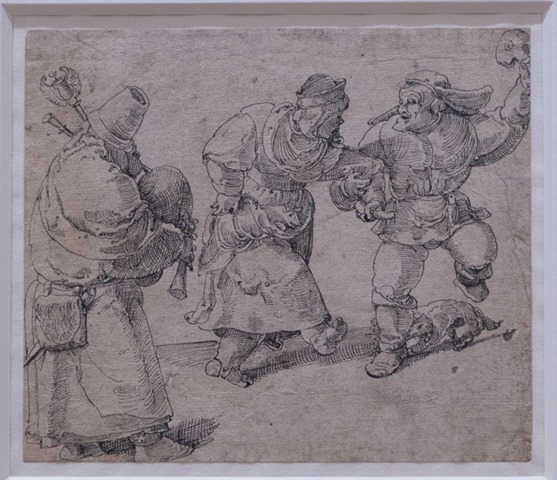 20 : Aertgen Claesz van Leyden, Couple de paysans dansant et joueur de cornemuse vers 1525
