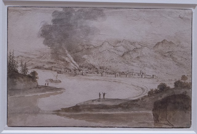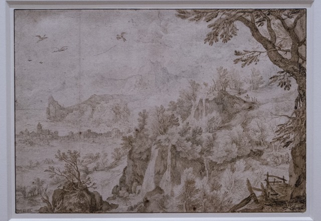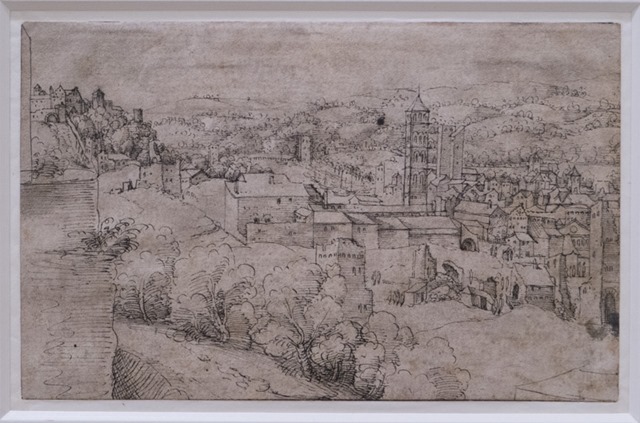 28 : Pieter Bruegel l'Ancien, Vue de Reggio di Calabria, vers 1560, Plume et encre brune, ajout ultérieur de lavis gris et brun