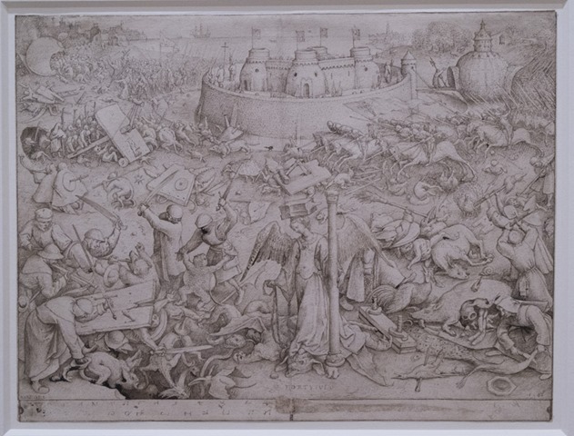 44 : Pieter Bruegel, l'Ancien, La Force, 1560, Plume et encre brune, repassé à la pointe. Un bruegel à la Bosch.