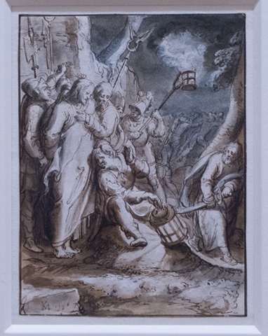 57 : Karem van Mander, Série de la Passion 1596, Plume et encre brune, lavis gris bleuté, rehaussé de blanc, repassé à la pointe. Certes, le thème est tout sauf original mais le traitement tout en contraste coloré vaut vraiment le détour.