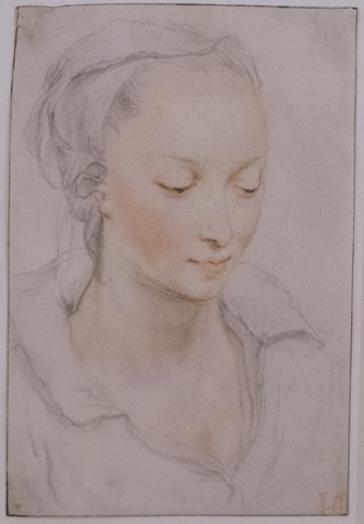 80 : Hendrick Goltzius, Portrait d'une jeune femme, vers 1605-10, Pierre noire et sanguine sur vélin préparé blanc.