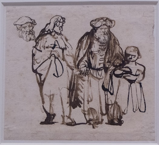 Rembrandts, scène biblique (3 marcheurs + 1 tête)