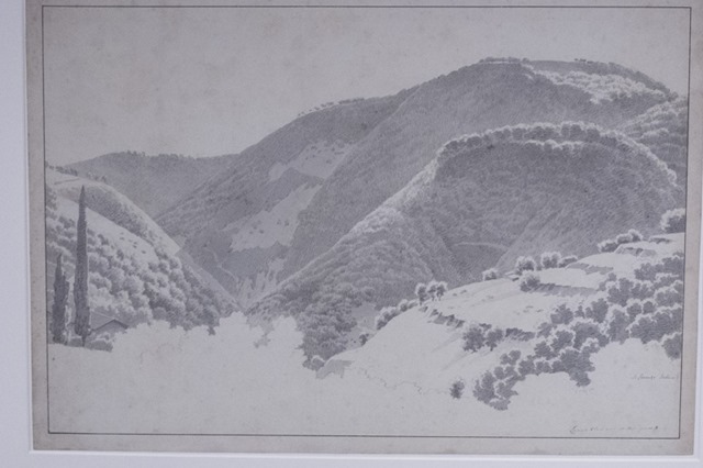 23 : Jan van Scorel, Vue d'une ville dans un paysage montagneux, vers 1519-21. Plume et encre noire.