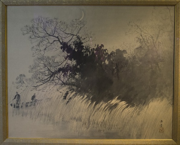 Hors parcours, une très belle nocturne japonaise : Crépuscule, le lac, Kawai Gyokudô, Ere Taishô, début ère Showa, avant 1929, Encre sur Papier