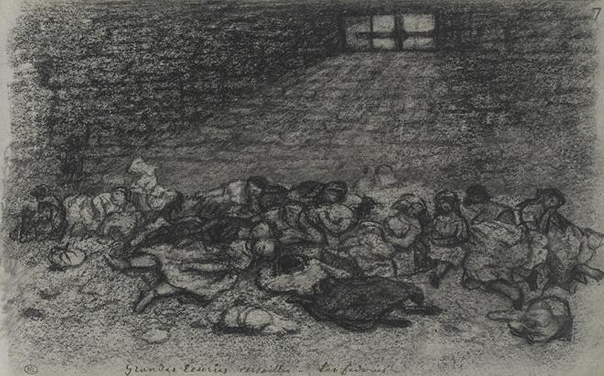 Quelques dessins plus engagés sont aussi convoqués : des aquarelles de Daumier, Meissonier_ la Barricade_ 1848, des dénonciations des fanatismes religieux (pardon pour la répétition) de Kupka, Un carnet de croquis de Courbet dont on ne verra que _Fédérés aux grandes Ecuries de Versailles_ 1871.