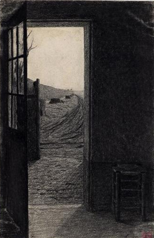 Un chouchou, un peu sombre tout en suggestion : Léon Bonvin, _une chambre avec la porte ouvrant sur une cour et un chemin._