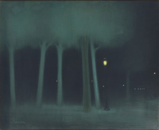 Et deux découvertes, William Degouve de Nuncques,_ Nocturne au parc royal de Bruxelles, croisement d’allées_ et József Rippl-Rónai,_ un parc dans la nuit_. Une sorte d’_Empire des lumières_ brumeux, à ne pas manquer.